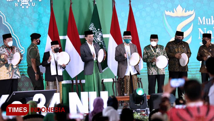 TIMES Bulungan/Presiden Jokowi (Joko Widodo) membuka secara resmi Muktamar Ke-34 Nahdlatul Ulama di Pondok Pesantren Darussa’adah, Gunung Sugih, Lampung Tengah, Rabu (22/12/2021). (FOTO: Moh Ramli/TIMES Indonesia)