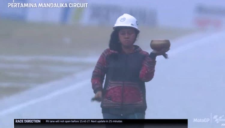 TIMES Bulungan/Raden Rara Isti Wulandari, sang pawang hujan saat Sirkuit Mandalika, Lombok Tengah, NTB, Minggu (20/3/2022) (FOTO: t-2.tstatic.net)
